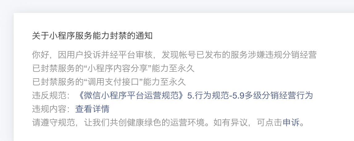 你好,因用户投诉并经平台审核,发现帐号已发布的服务涉嫌违规分销经营