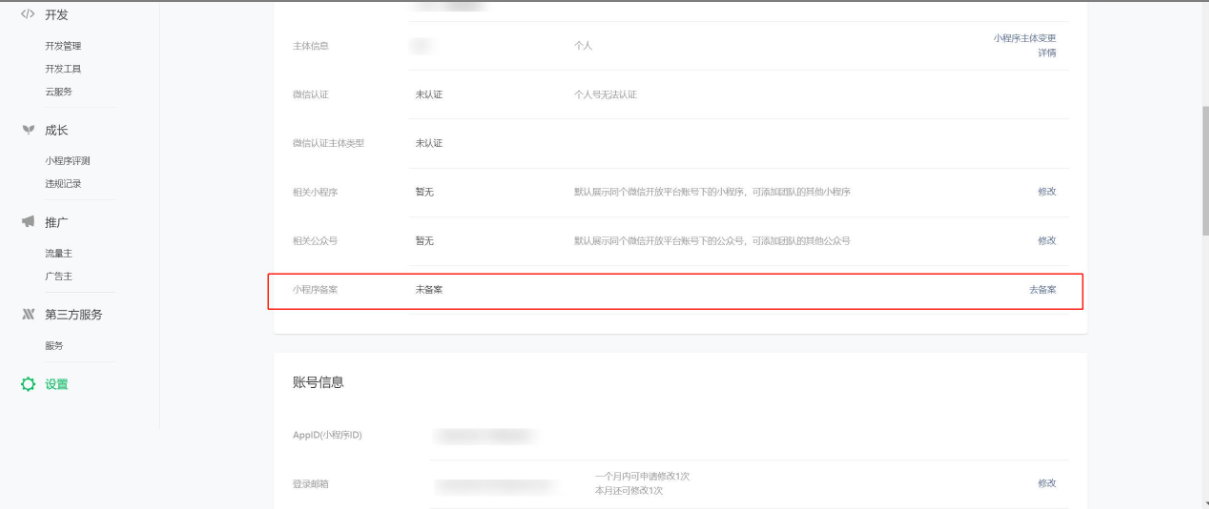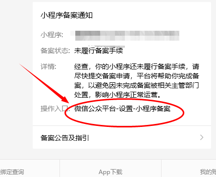 收到短信提示小程序需要做备案,怎么操作,没有找到端口进入备案界面?