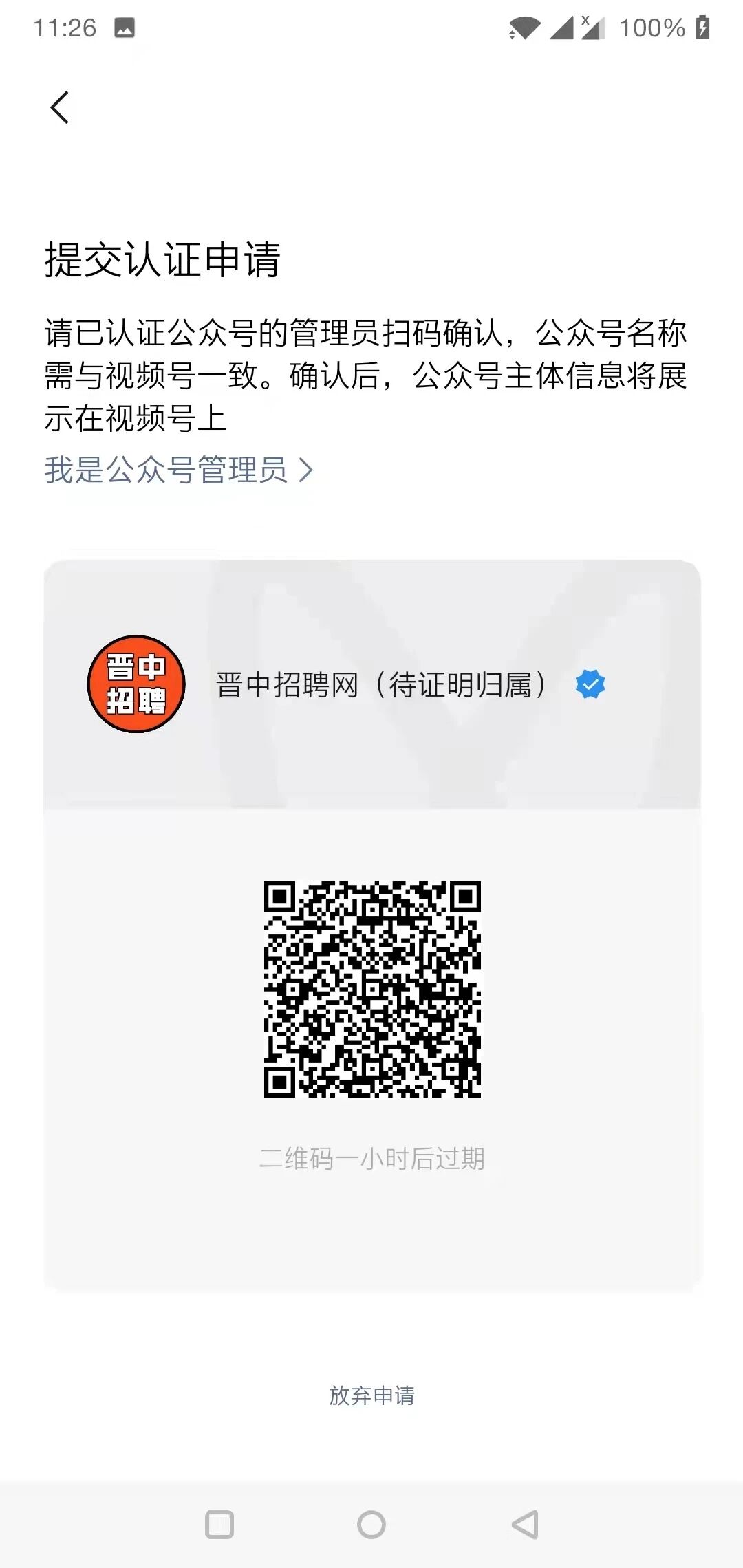 视频号认证与公众号名称不一样时候,在待证明归属页面点击我是公众号管理员无反应。