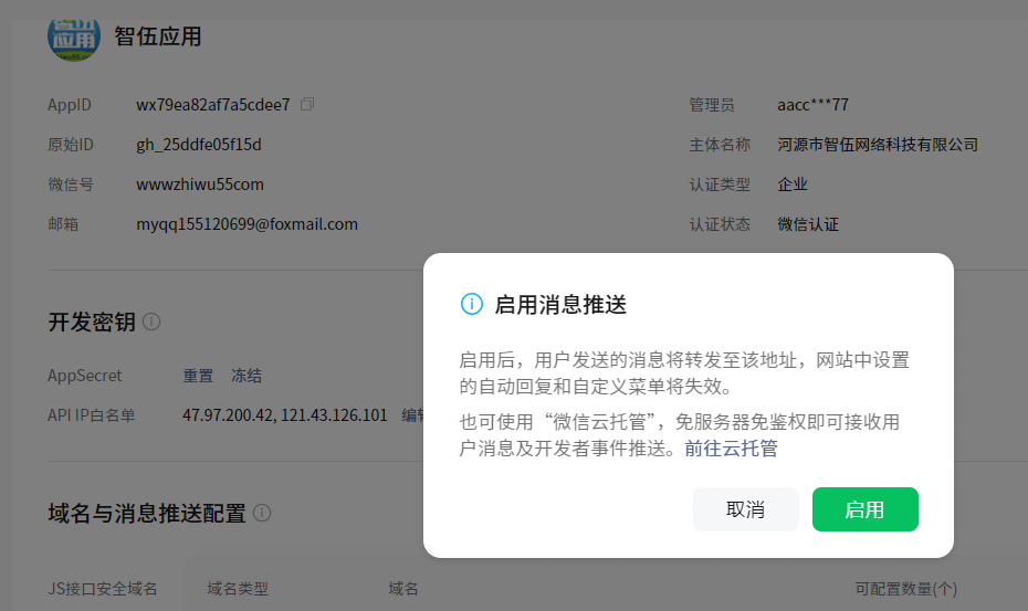 Token和EncodingAESKey等参数都是正确的,但消息推送一直无法配置!!