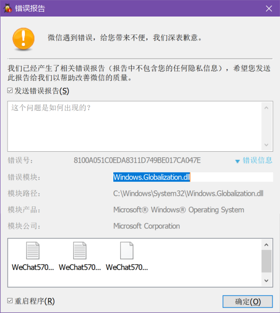 Windows,使用的是最新微信版本,打字时没问题,按空格或数字键选字后微信直接崩溃退出,且没有任何报错信息,尝试了搜狗输入法、搜狗五笔输入法、系统自带输入法,皆存在该问题。