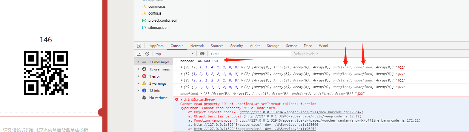 两份同样的代码barcode.js。引用也都一模一样的。画同一个数据一个报错 一个正常? 怎么回事?有没有大神解答一下?