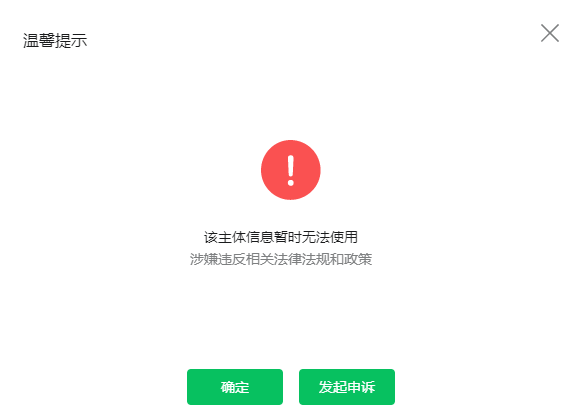 同主体下2个小程序,一个存在过违规,正常使用的小程序重新认证修改名称时提醒主体不可使用,要怎么申诉?