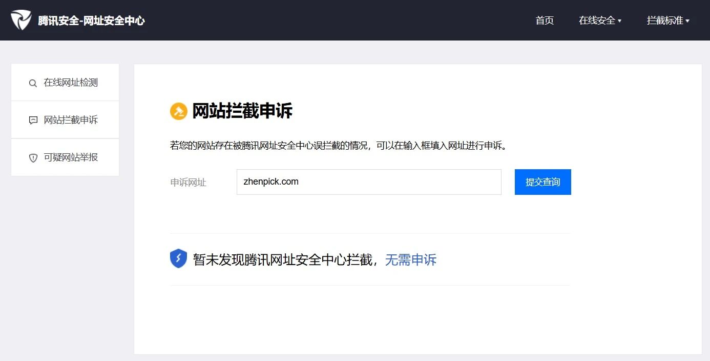 已取消子域名 kf.zhenpick.com 的解析,当前已无法访问。 腾讯安全- 网址安全中心检测正常,请核实恢复访问