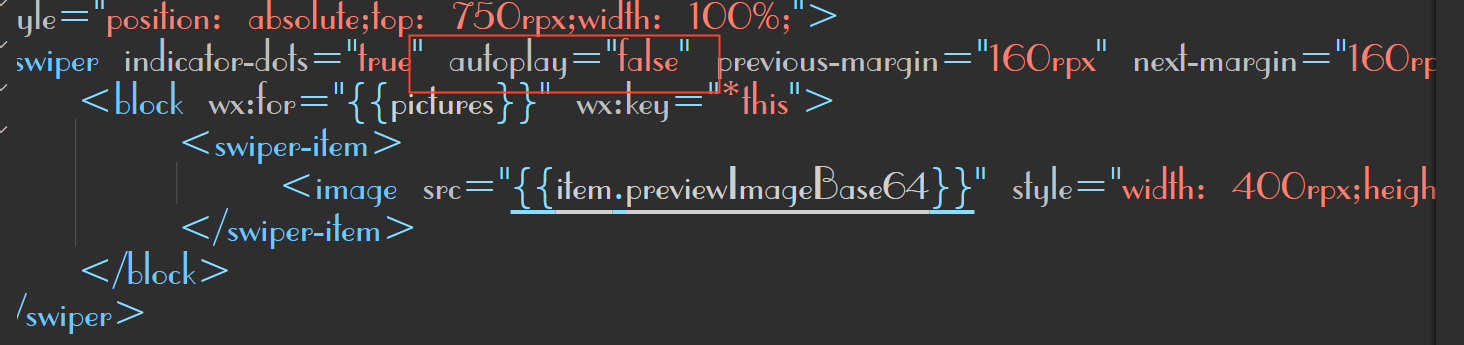 需要括起来 autoplay="{{false}}"