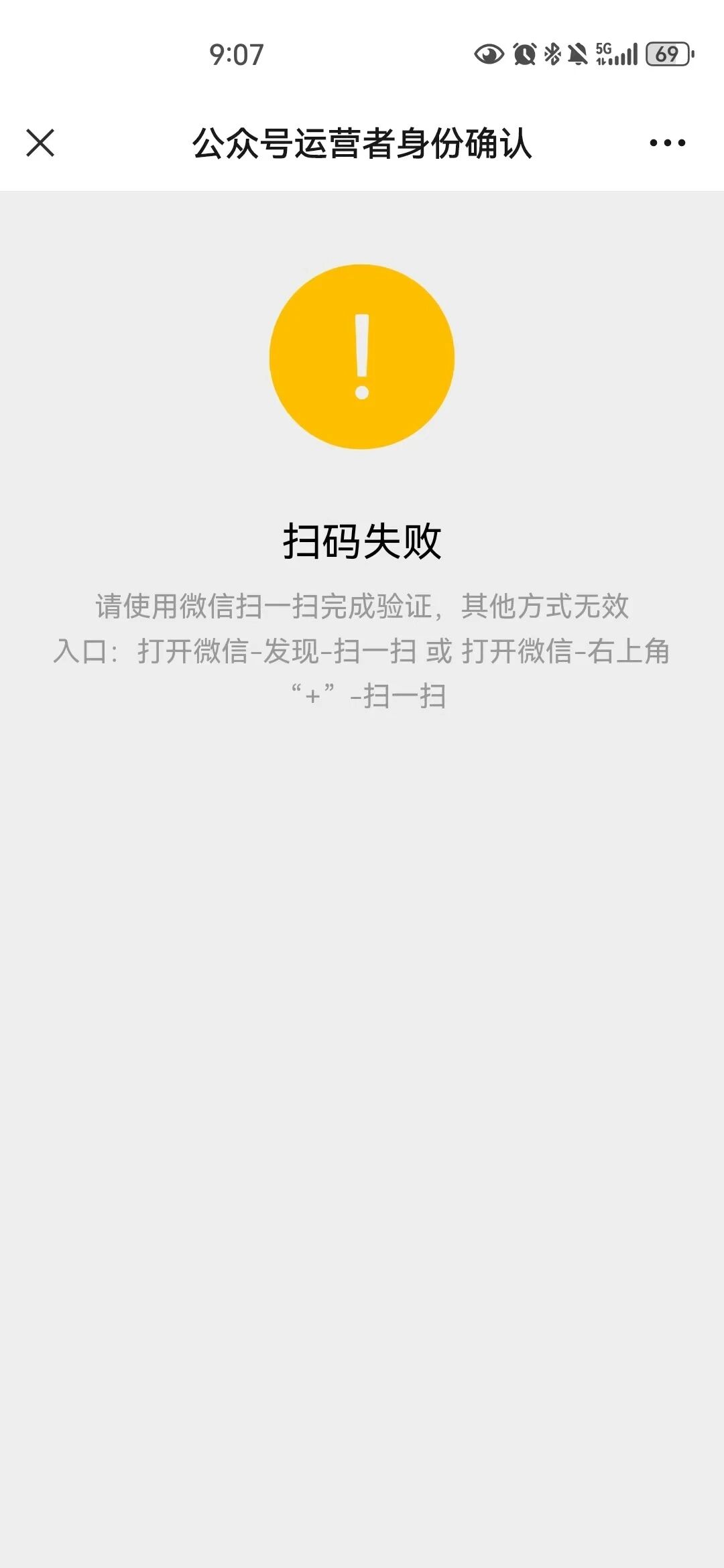 都不生效,依旧提示:扫码失败 请使用微信扫一扫完成验证,其他方式无效。