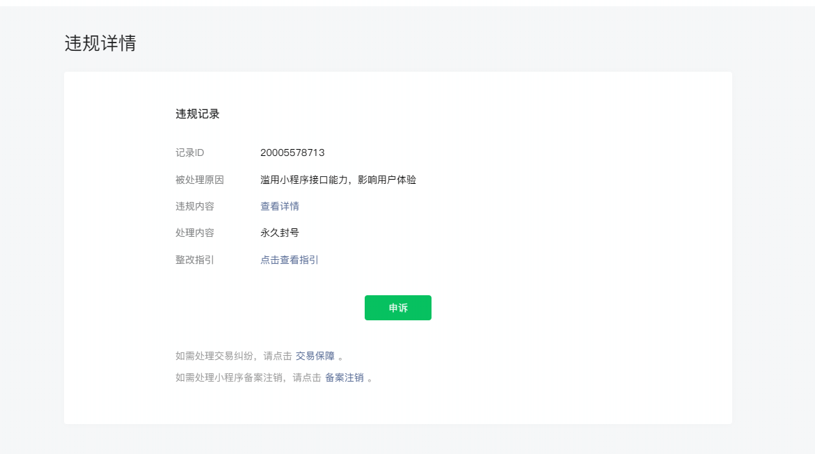 小程序违规了,想注销,但是点击注销之后页面是空白的。
