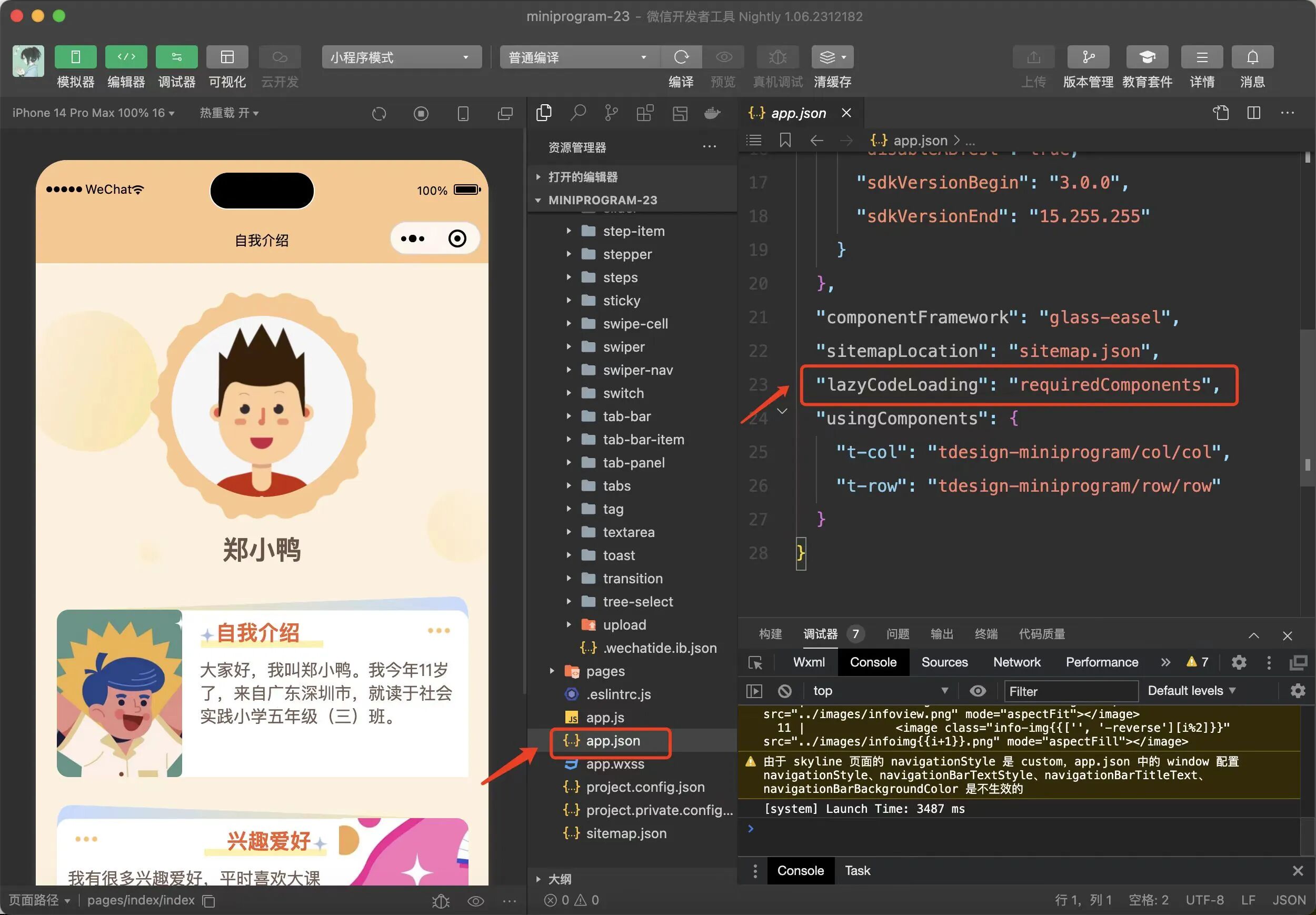 在 app.json 中加入 "lazyCodeLoading": "requiredComponents"可以启用小程序组件按需注入,降低小程序的启动时间和运行时内存。
