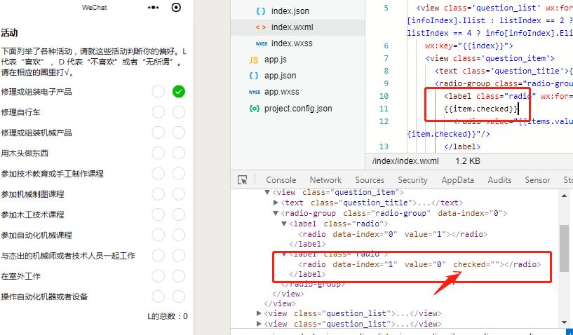 我刚刚看了 wxml确实checked是空 为什么会导致这种情况呢 我已经通过js添加了checked的值了呀 而且修改完之后打印出来的数据也是对的 怎么会没有渲染出来