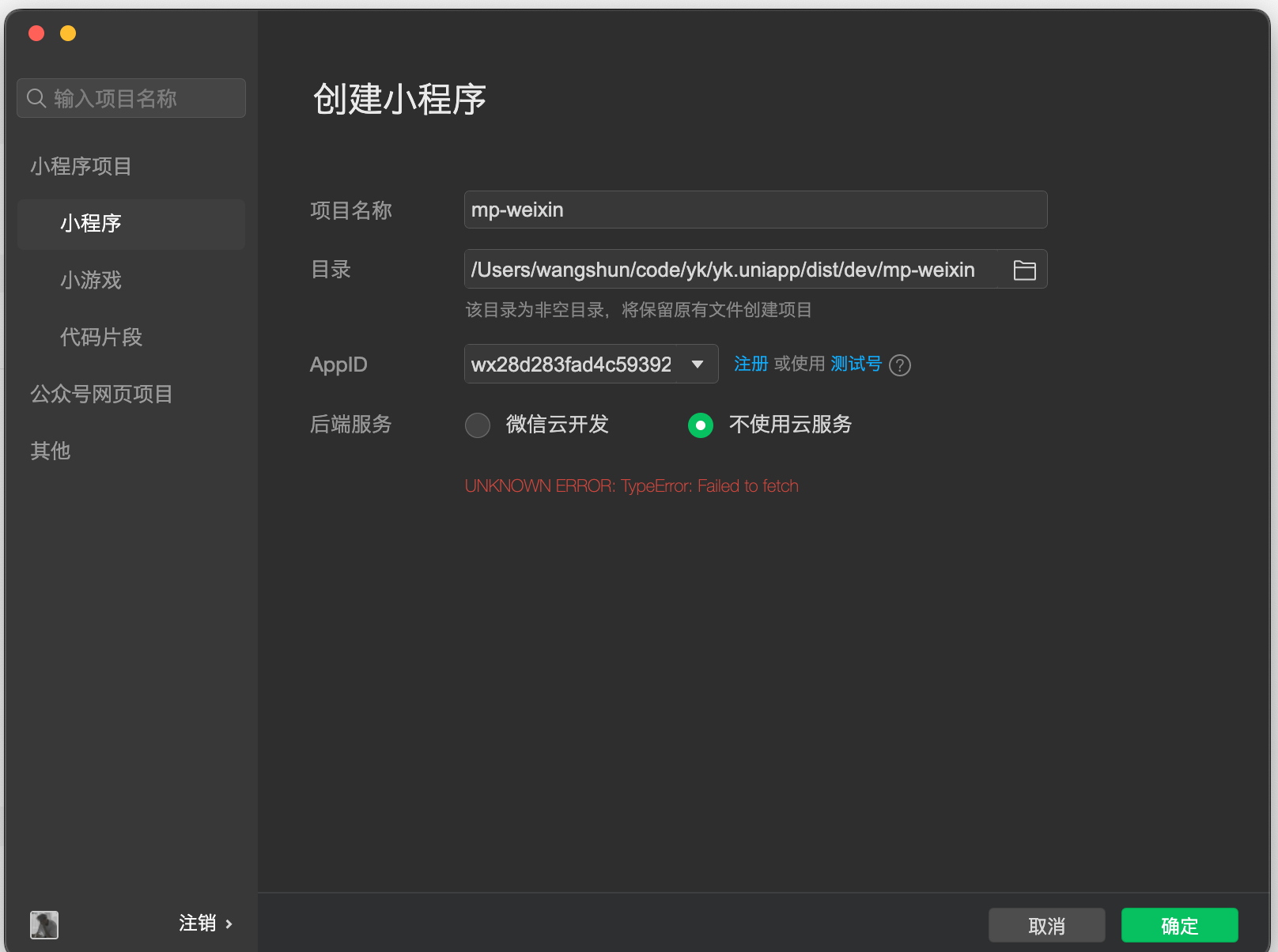 mac升级到最新系统以后,发现无法导入小程序项目了;