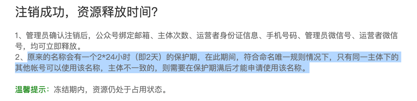 注册服务号的时候不小心注册成订阅号,于是就重新注册一个服务号,但是被告知公众号名字重复,只好去把那个订阅号给注销掉。我想知道多久可以注销?注销后能否在使用这个名字?