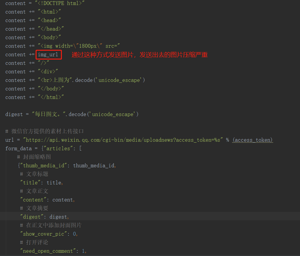 通过上面方法每日发送图文信息,不过发送出去的图片非常模糊(图片本身很高清)。