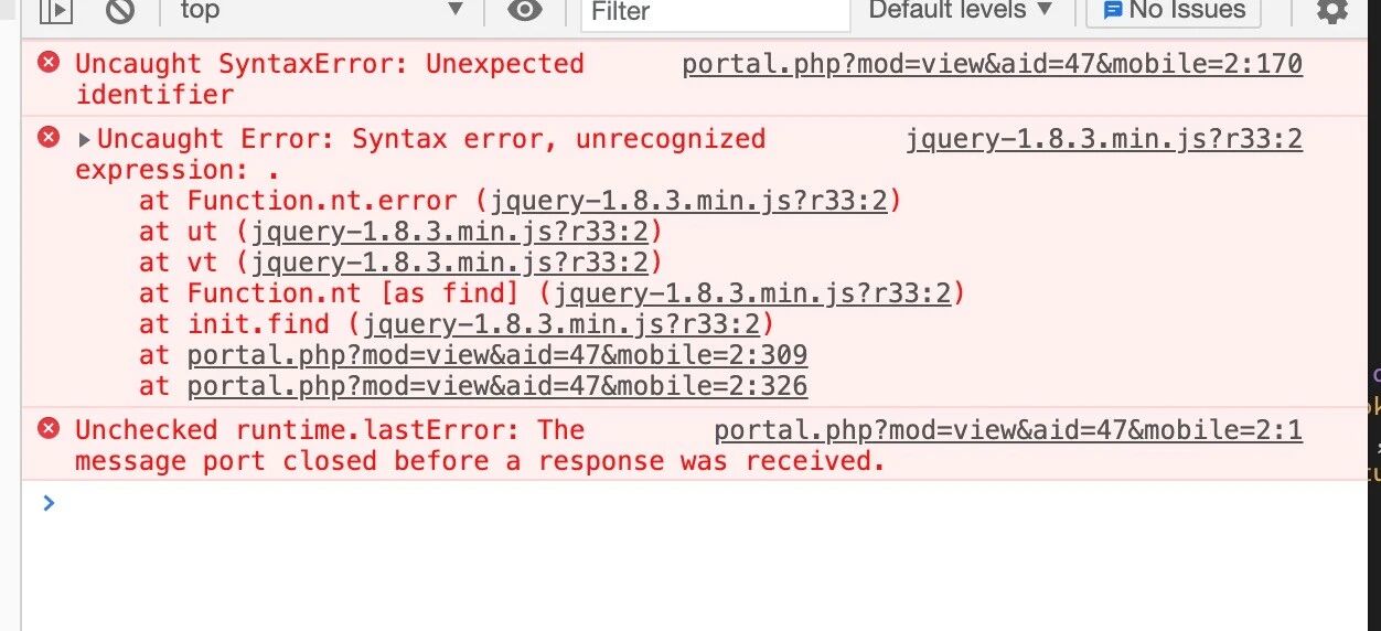 但同样的代码,在另外一个站是可以正常运行的,请官方大人帮我查看下,我测试的手机是联想z5 微信版本8.0.1 /苹果7p 微信版本8.0.5 ,故障地址:https://www.joyzhu.net/portal.php?mod=view&aid=46