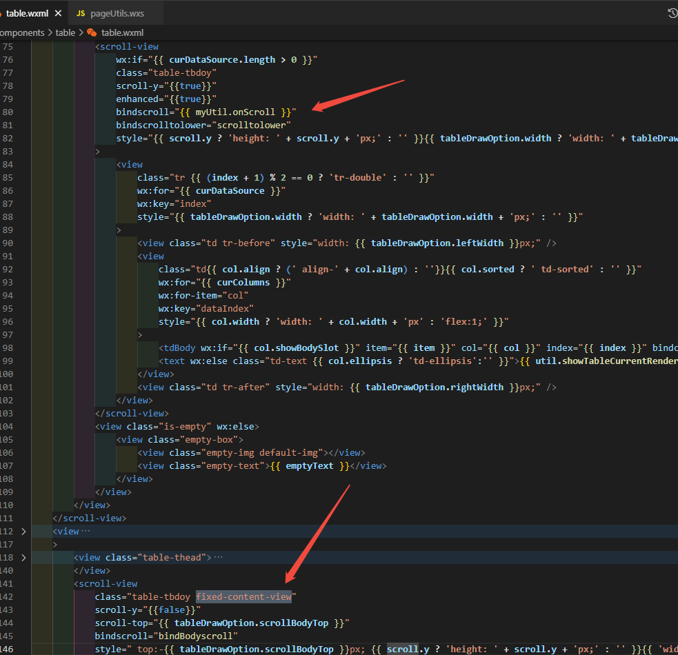 可以这样,也就是下面第二个scroll-view是用css position去设置位置,然后通过wxs设置setStyle就行,在wxs给scroll-view组件传入数据貌似不行,没试过