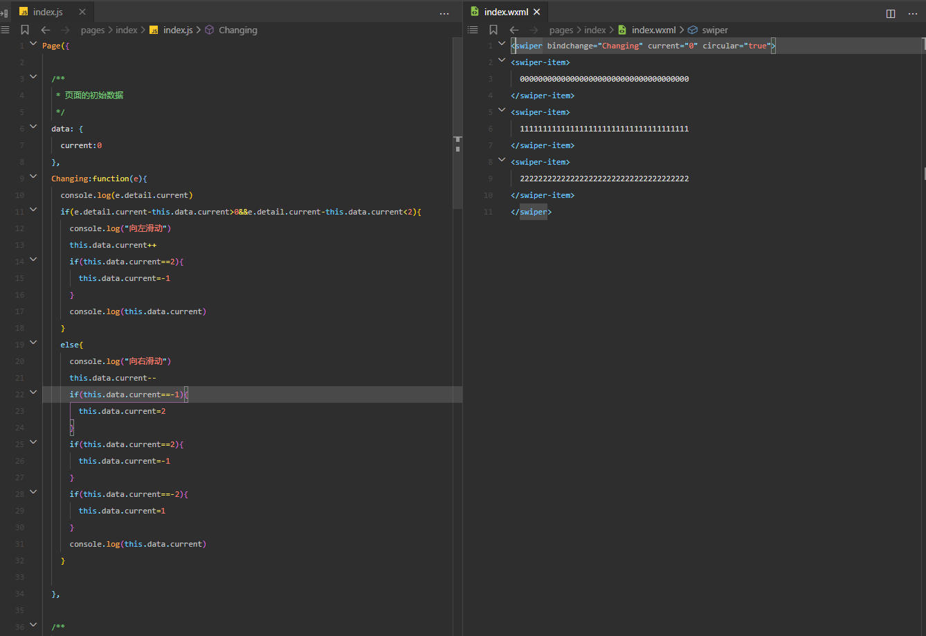 到最后一个swiper-item 呢? current 不会变的