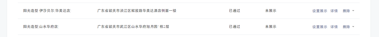 你好,由于一个经营资质(账号主体)仅支持添加一个地点,一个地点只能展示一个小程序,核实贵司提及的四家被占用门店为主体“浈江区阳光造型美发中心”于2019年1月所添加门店,由于该主体“浈江区阳光造型美发中心”与贵司账号主体为同一法人,建议登录该公众号“阳光造型”取消被占用门店的展示。