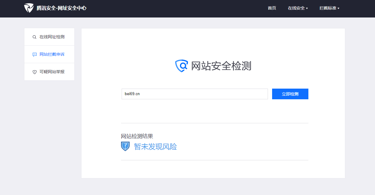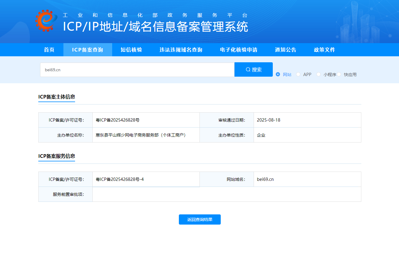 您好!本网站域名地址:http://bei69.cn/备案号:粤ICP备2025426828号,在微信端打开显示被拦截,内容经自检无任何违规,腾讯官方检测也未发现风险。烦请管理员审核解除下拦截,谢谢