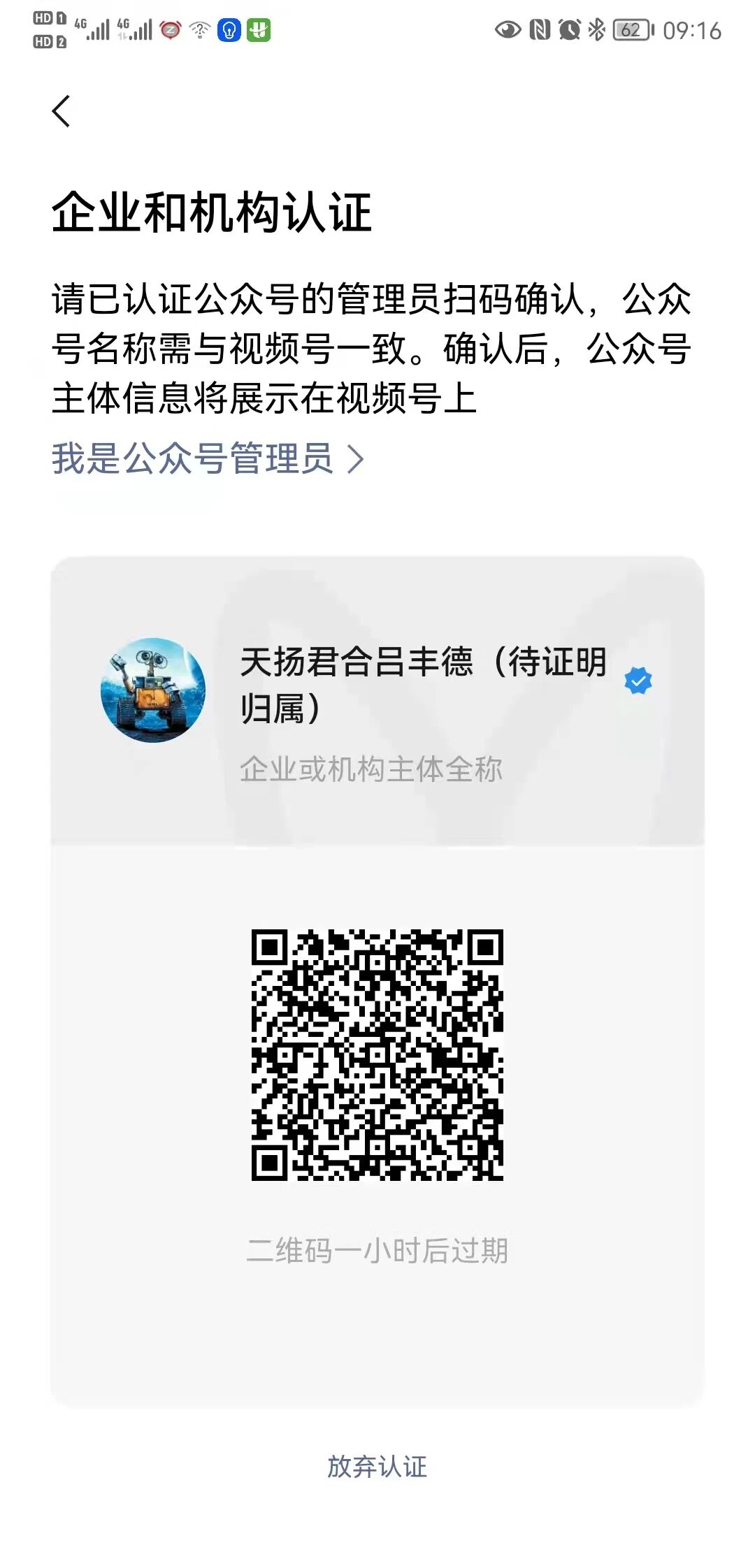 视频号改名字已提交归属证明,但是无法用公众号认证怎么办?