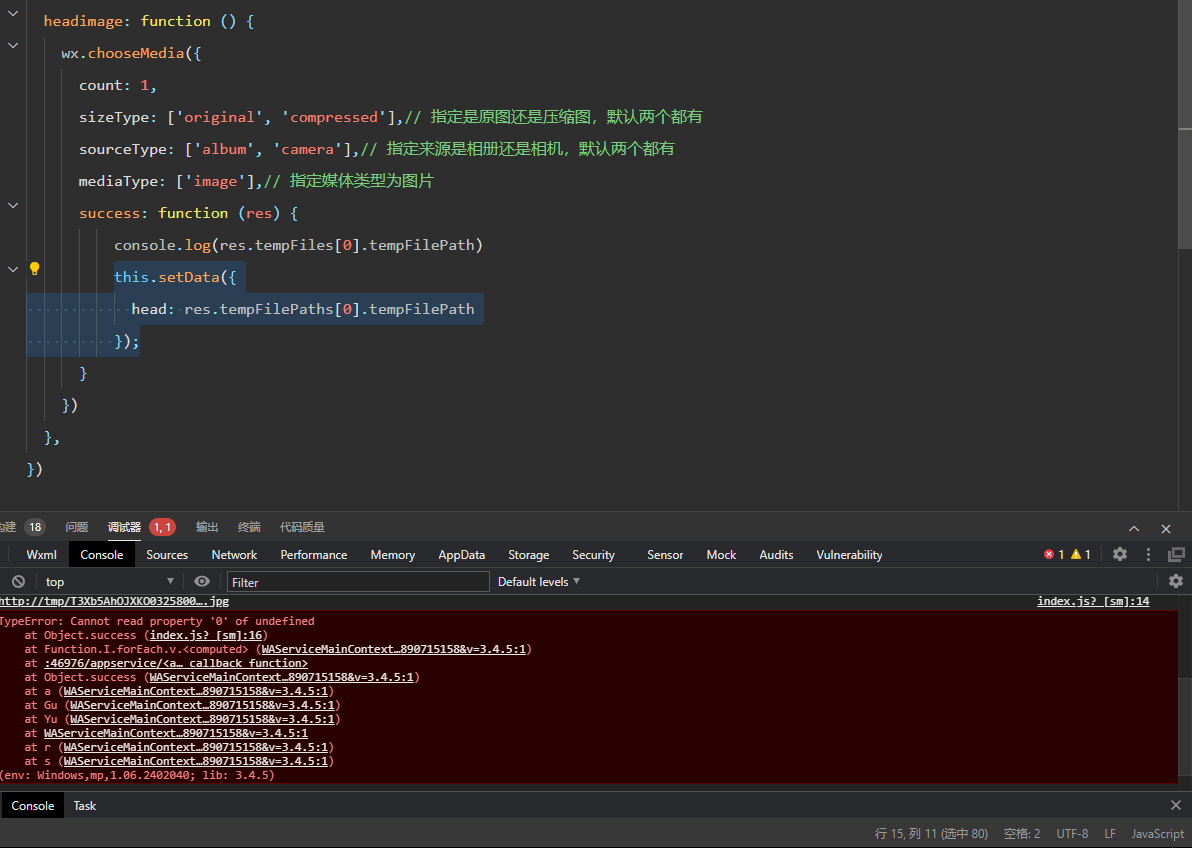 如图,明明返回是有值的,但是为什么想给head赋值时就报错?