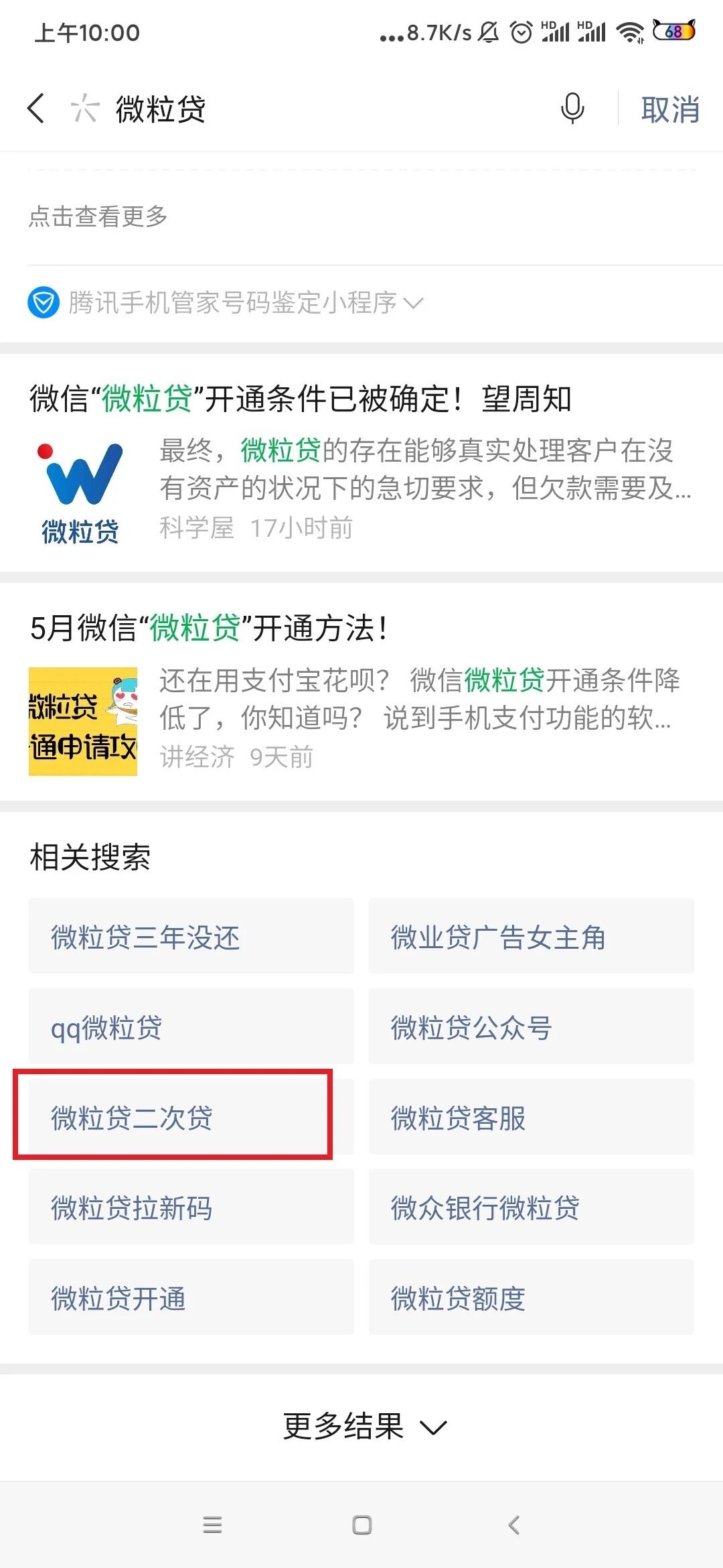 在搜一搜里搜索“微粒贷”时出现:“微粒贷二次贷”的内容,实际上点进去出现的内容并无真实凭据,纯属恶意诋毁和蹭热度,望处理。