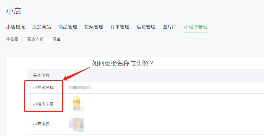 1、请问微信小店里面的小程序名称、头像怎么更改?可以在里面申请修改?