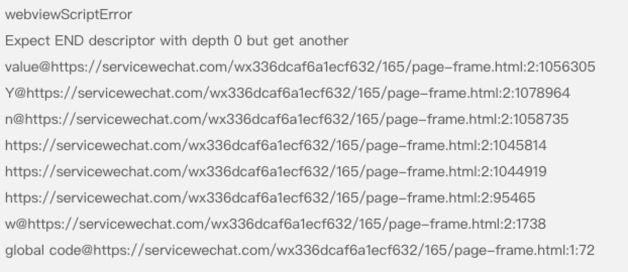 | 框架类型 | 问题类型 | 操作系统版本 | 手机型号 | 微信版本 |