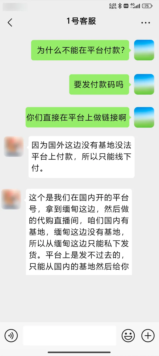 3、小店客服消息中直接引导或暗示用户离开平台交易、货到付款、添加微信私下选购等