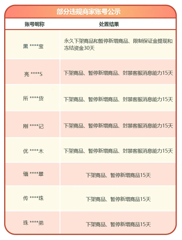 现对部分违规商家和达人处置公示如下: