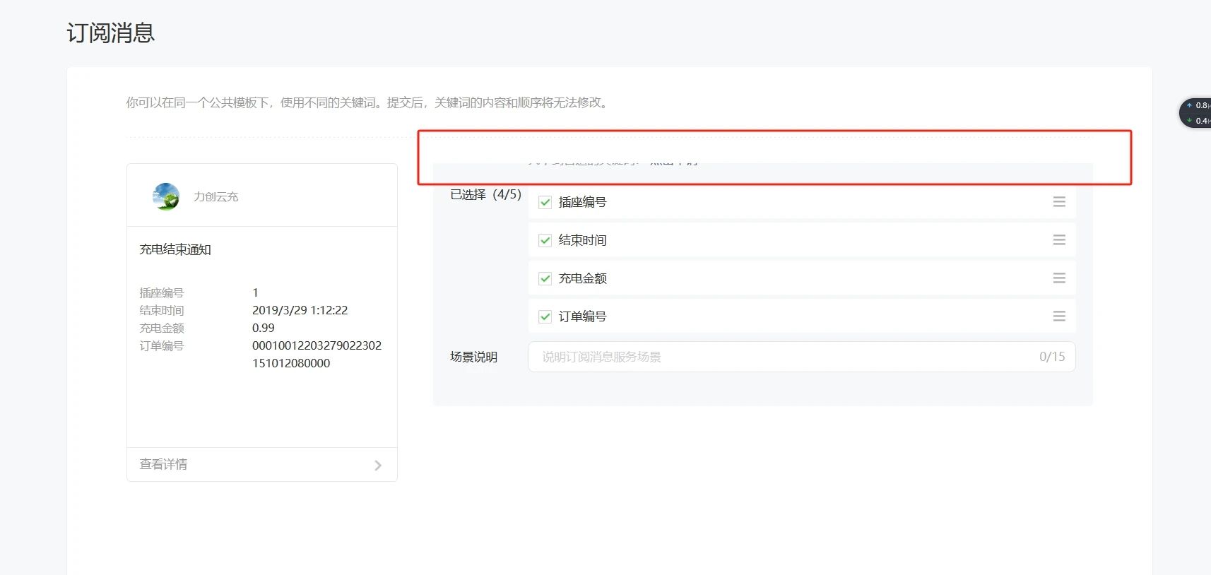 选择一次性订阅模板关键词时选不全或界面隐藏不显示?