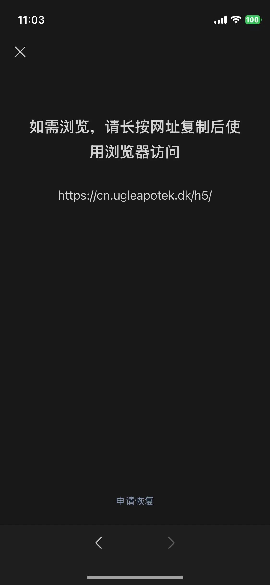 https://cn.ugleapotek.dk/h5/ ,这个网址对接了微信公众号登录,依赖于微信内部浏览器。现在每次访问都提示需要使用外部浏览器打开。