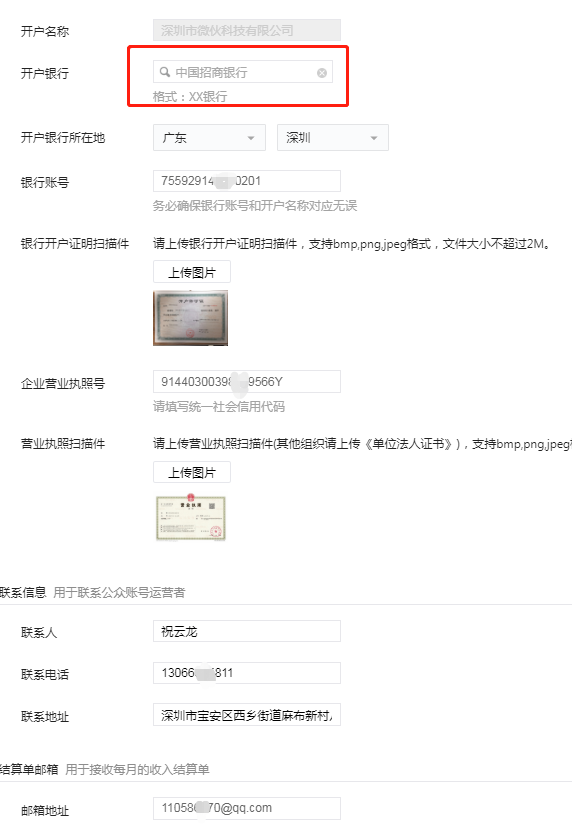 银行、账号、邮箱、联系人等等都是一样的。