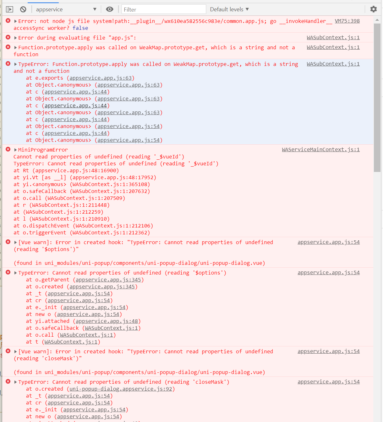 页面无法点击,点击就报错,但是在开发者工具上边可以正常使用