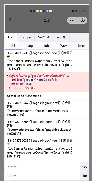 使用按钮调用getPhoneNumber,返回错误{errMsg:"getUserPhoneCode:fail",err_code:'1001'}