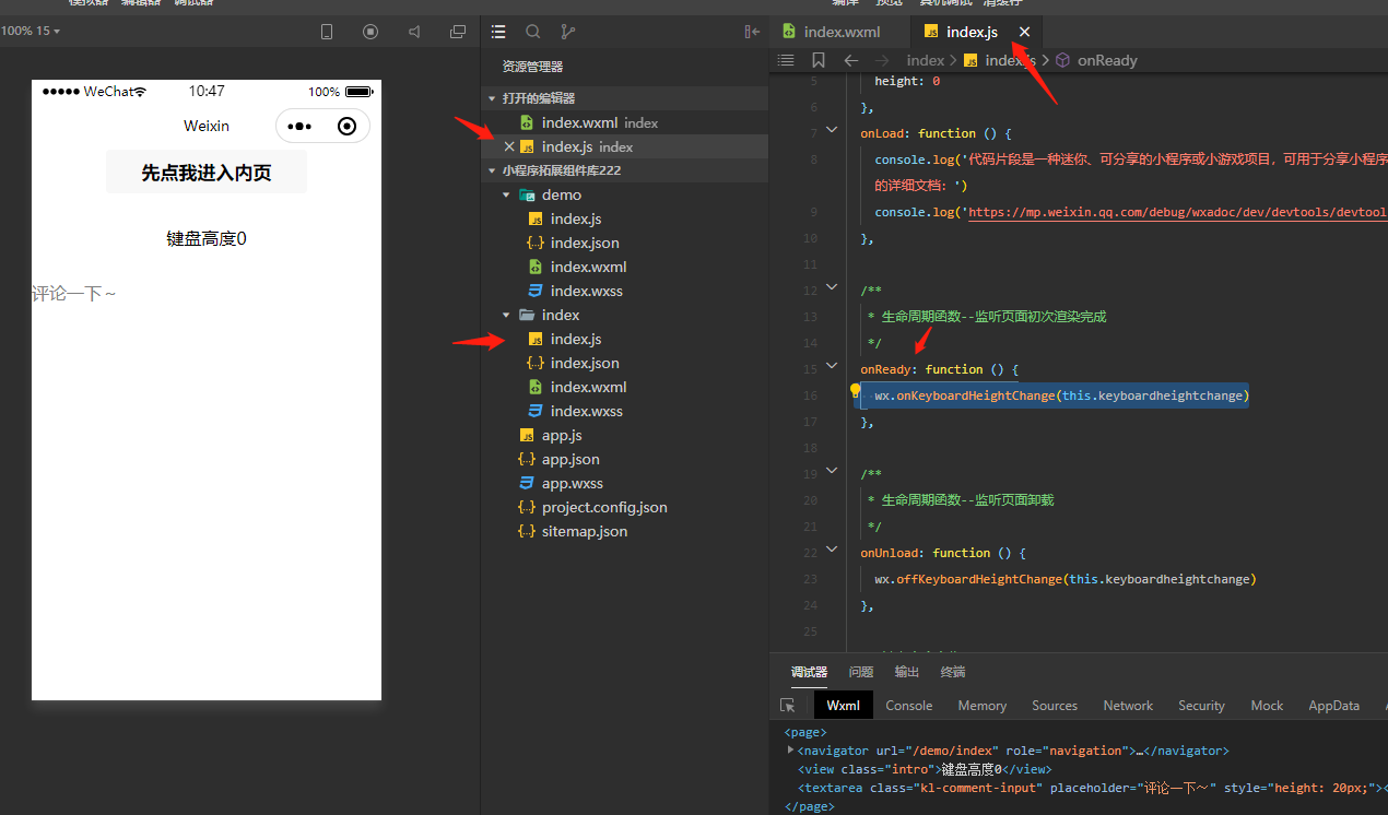 同时在两个页面使用wx.onKeyboardHeightChange和wx.offKeyboardHeightChange, offKeyboardHeightChange会把所有的页面的onKeyboardHeightChange事件给卸载掉,这样就会导致onKeyboardHeightChange莫名其妙不执行的问题,因为直接用组件上的bindkeyboardheightchange在有些机器上也不能正常触发,只能使用wx.onKeyboardHeightChange, 现在只能在onshow时绑定 ,onHide的时候卸载,两个页面不同的回调函数为什么要把其他的也卸载了,不可以指定卸载某个么,要不然太容易误导人了,出了问题完全懵逼,都不知道是什么原因,还以为是你们的onKeyboardHeightChange又有bug了