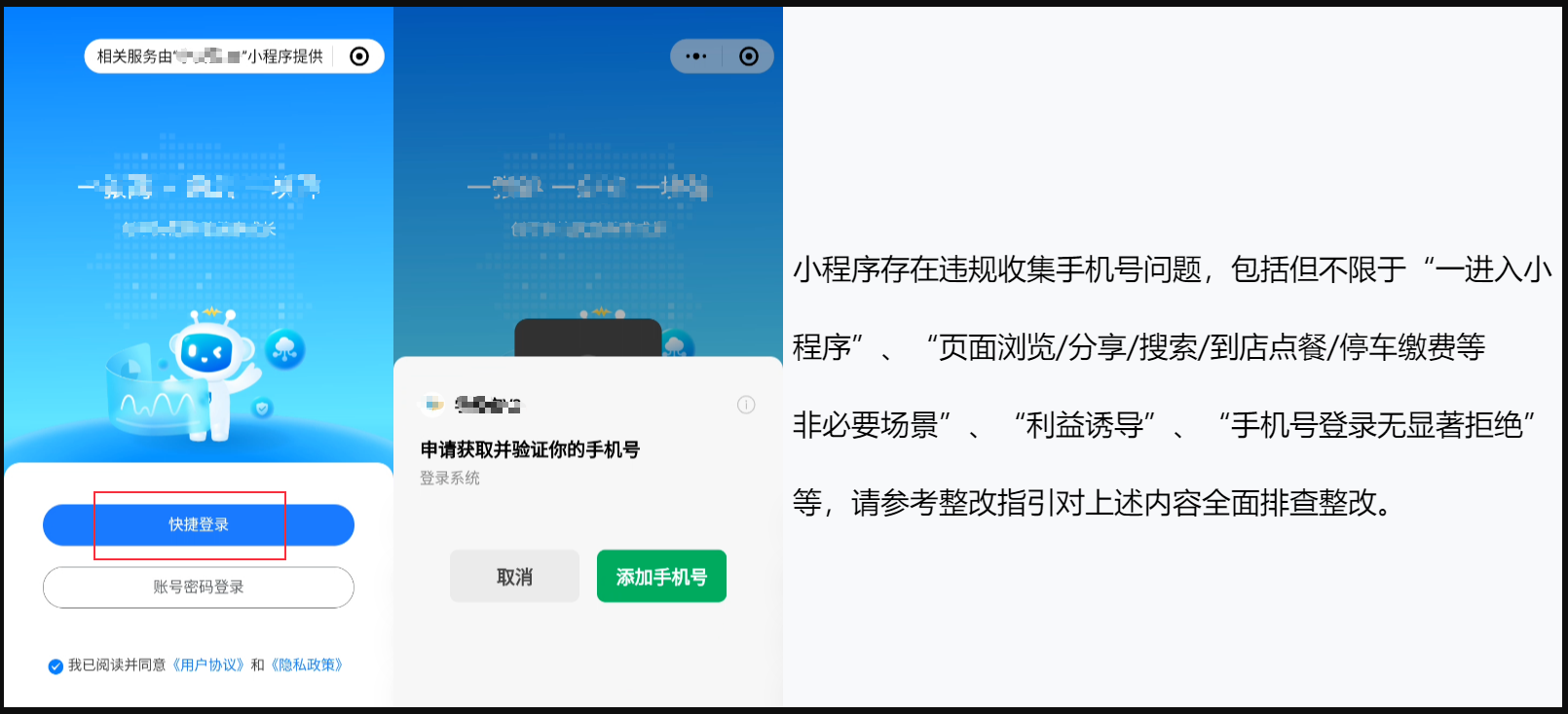 2.业务登录必要性。如果要登录我们系统的用户肯定是有账户的也就是手机号,并且是实名的教职工,手动输入手机号我们后台服务校验才可以进得去,那说明手机号是已经存在我们后台的并不存在说的违规收集手机号。请优化审核标准。
