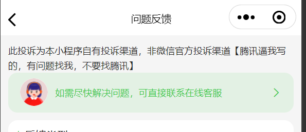 本文档为小程序投诉入口混淆官方说明,如存在上述问题应及时调整、修整,避免后续存在上诉问题审核失败;若仍有其他疑惑,可以通过以下咨询入口反馈: