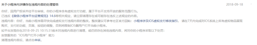 在9月18日收到关于Ios支付的问题通知,警告