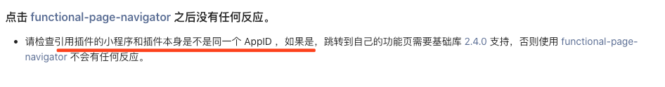 这句话有点不能理解。是说若果引用插件的小程序和插件本身不是同一个appId的话,是根本就不能用这个插件funcitonal-page-navigator吗?还是说可以用,只是不用考虑这个基础库2.4.0的问题?