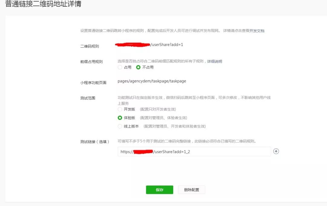 根据设定规则填写符合规则测试链接后,生成二维码可跳转;