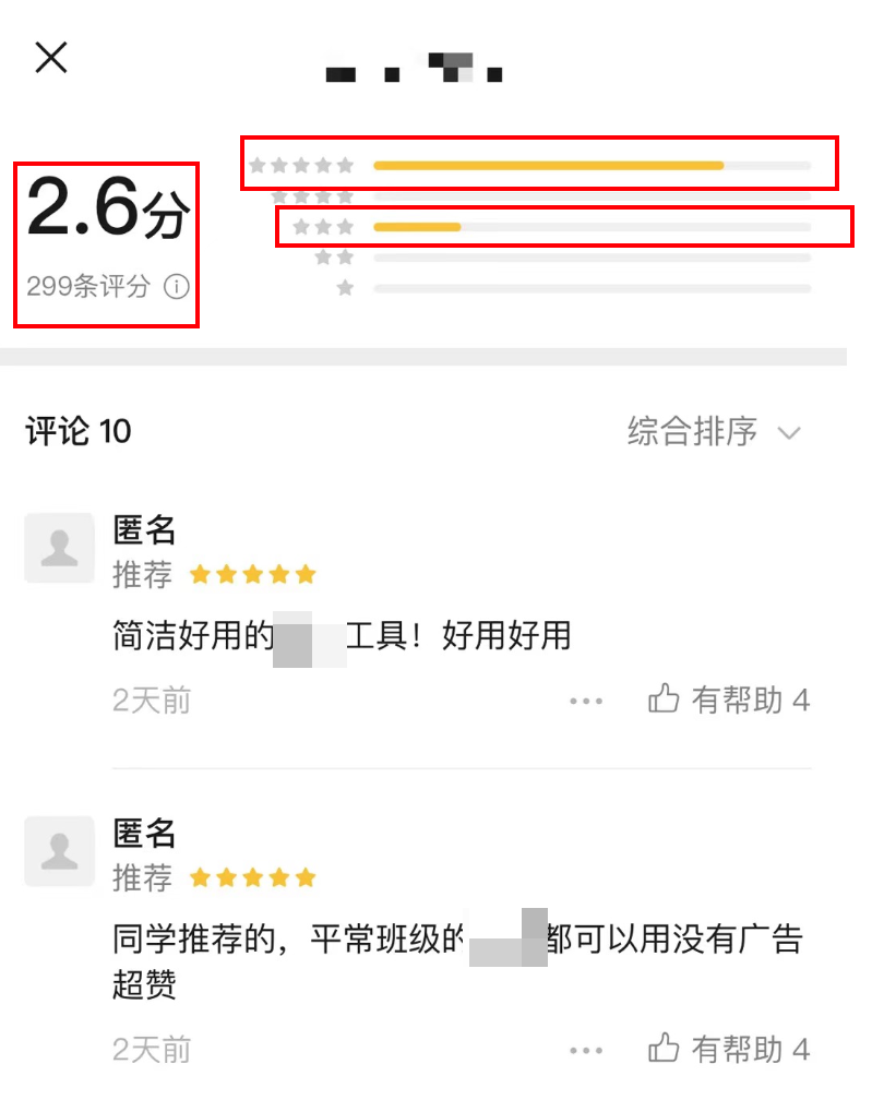 您好,我的小程序为什么评分那么低,大部分都是好评,只有少部分中平,而评分却只有2.6,是不是出bug了?