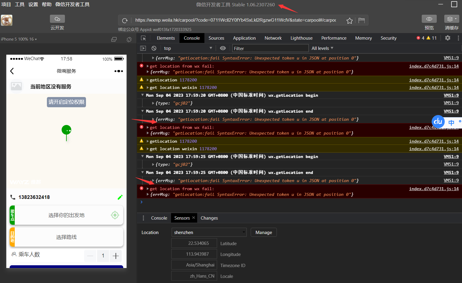 getLocation:fail SyntaxError: Unexpected token u in JSON at position 0
