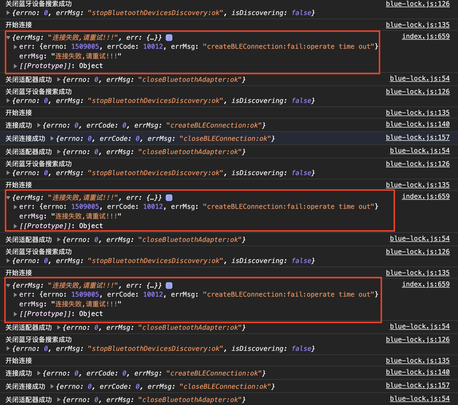 看到很多人发帖说连接前要先关闭设备搜索等个几百毫秒再连接设备,我的程序是等待了400ms时间才去连接设备的
