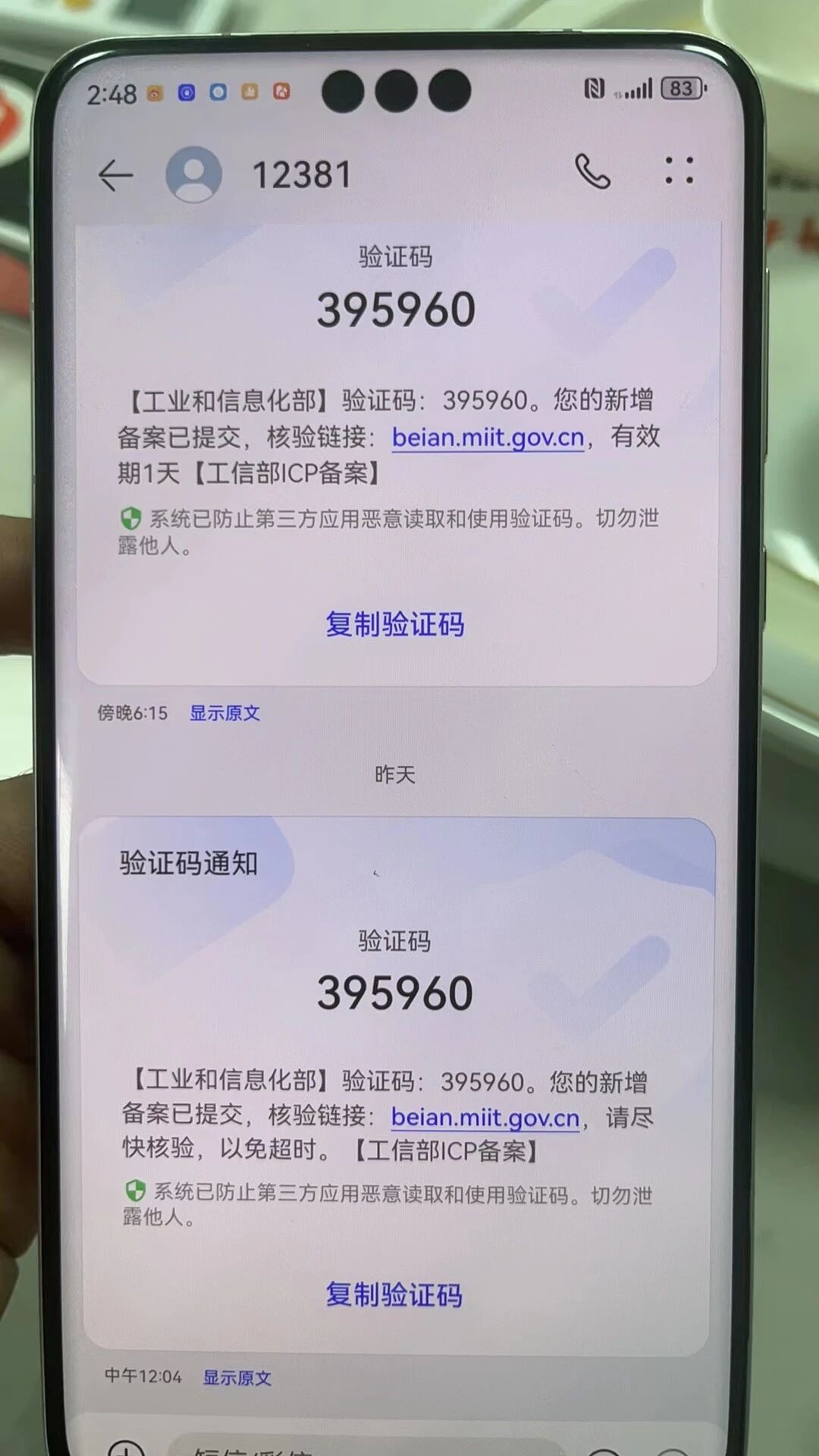 小程序提交备案后,法人前两天没空配合,导致24小时超时了,今天重新提交,到了管局审核阶段,法人接到0755-36558575的来电,说是用昨天前天的验证码去核验就好,但是我去管局提交短信核验却显示《您的短信核验失败,请联系接入商查询核验结果》。点击短信重发显示《您暂无待短信核验的备案申请,无需重发短信》