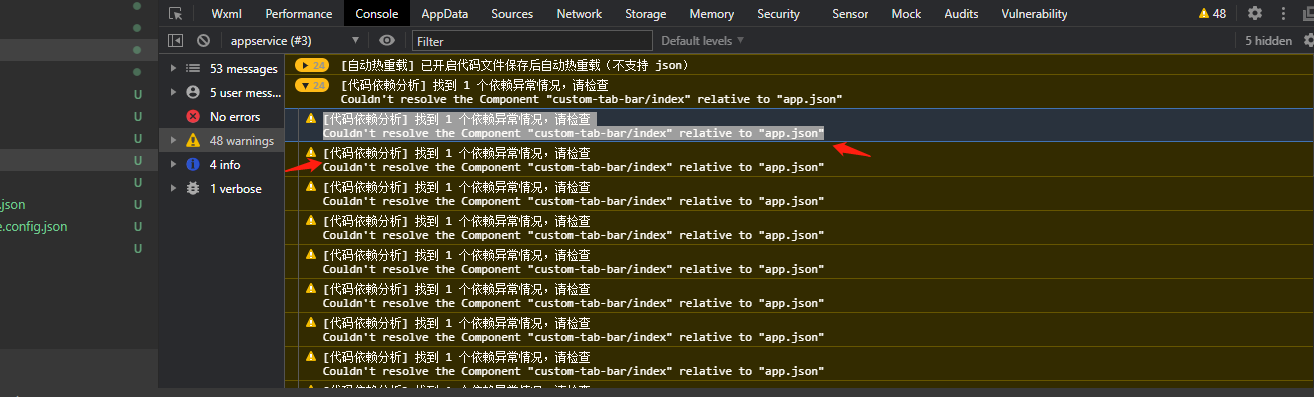 Couldn't resolve the Component "custom-tab-bar/index" relative to "app.json"