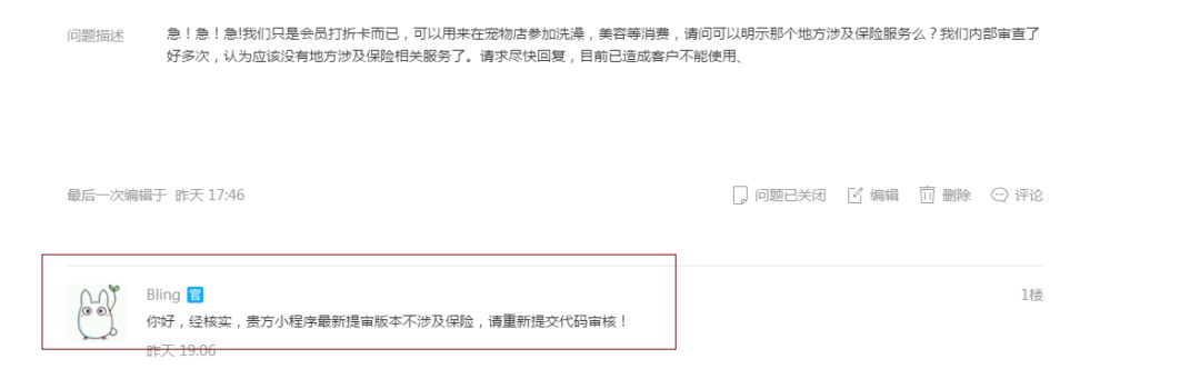 急!急!急!我们只是会员打折卡而已,可以用来在宠物店参加洗澡,美容等消费,请问可以明示那个地方涉及保险服务么?官方工作人员也已确认不涉及保险内容但提交后任因此问题遭拒,请求尽快处理,目前已造成客户长时间不能使用,确实对我公司造成不小损失,求助!!