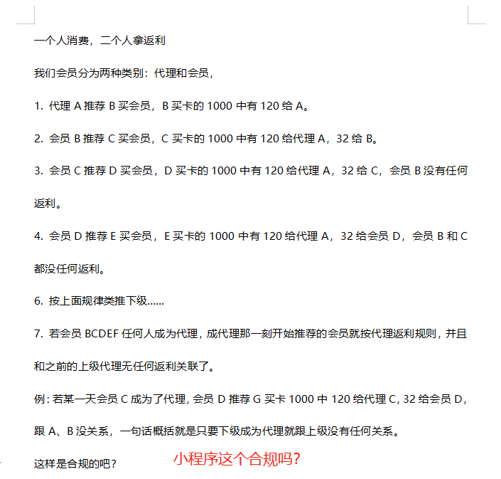 其中,限制只是上面2级获得佣金。这种模式微信是否允许?