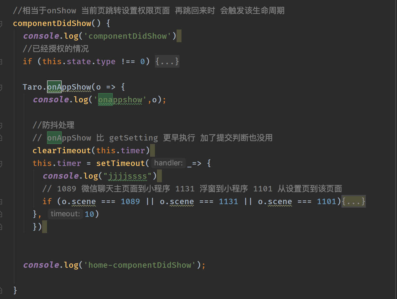 wx.onAppShow(null);