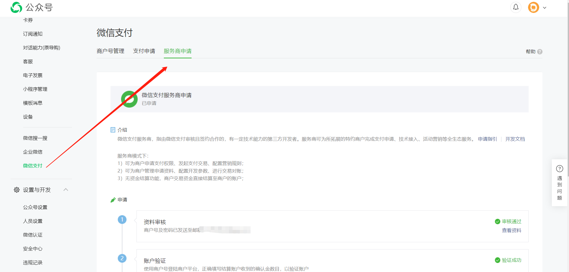 在公众平台 - 微信支付 - 服务商申请页面,怎么找不到微信支付 界面链接呢