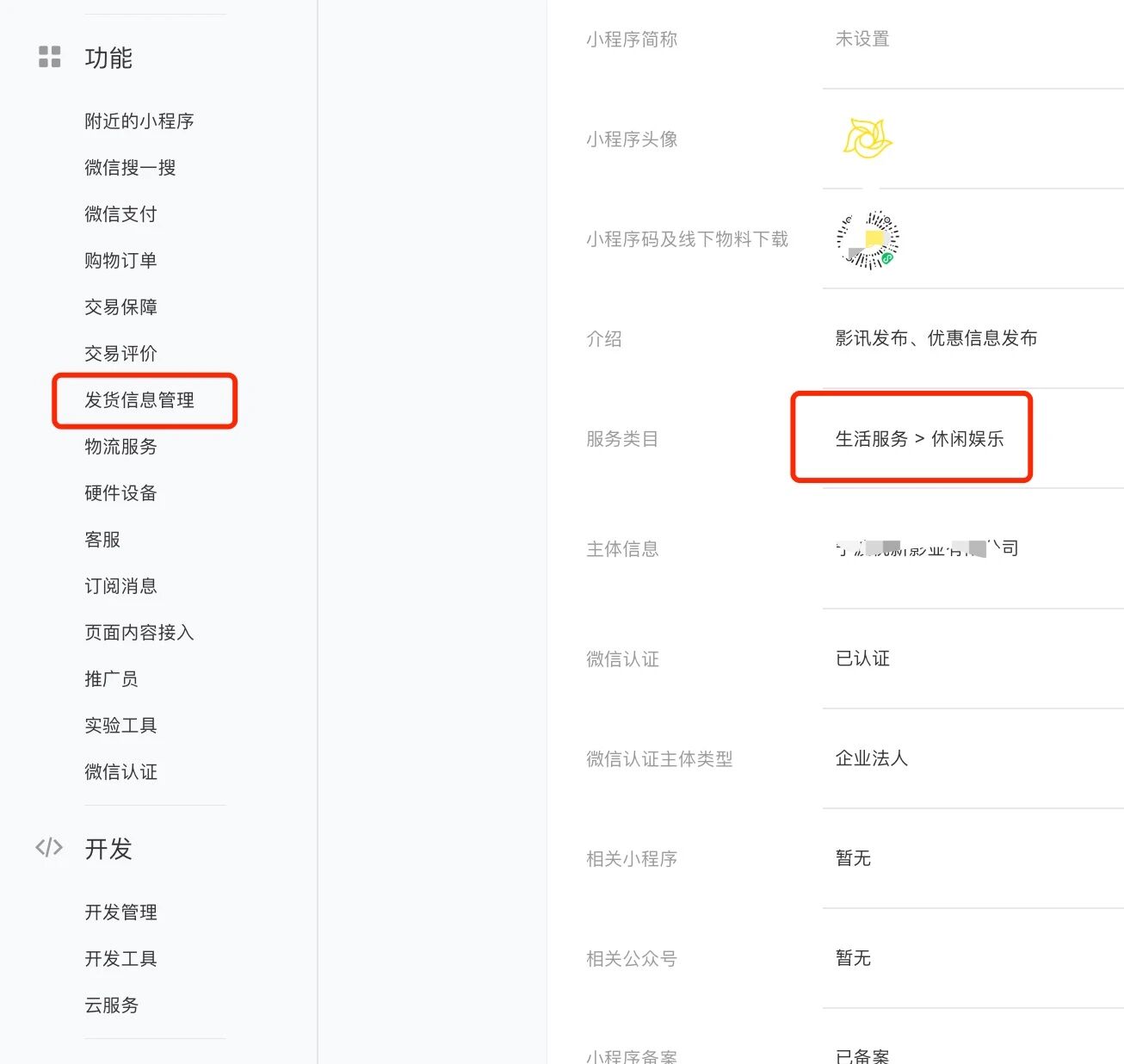 小程序的经营类目是休闲娱乐,是电影院在线购买电影票的,为什么会被当作电商平台而被开通了发货信息管理功能?