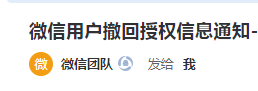 对于微信用户撤回授权信息,平台将每日一次邮件同步通知,请你及时删除附件中用户的相关授权信息(相关字段释义详见下方开发者社区文档说明)。